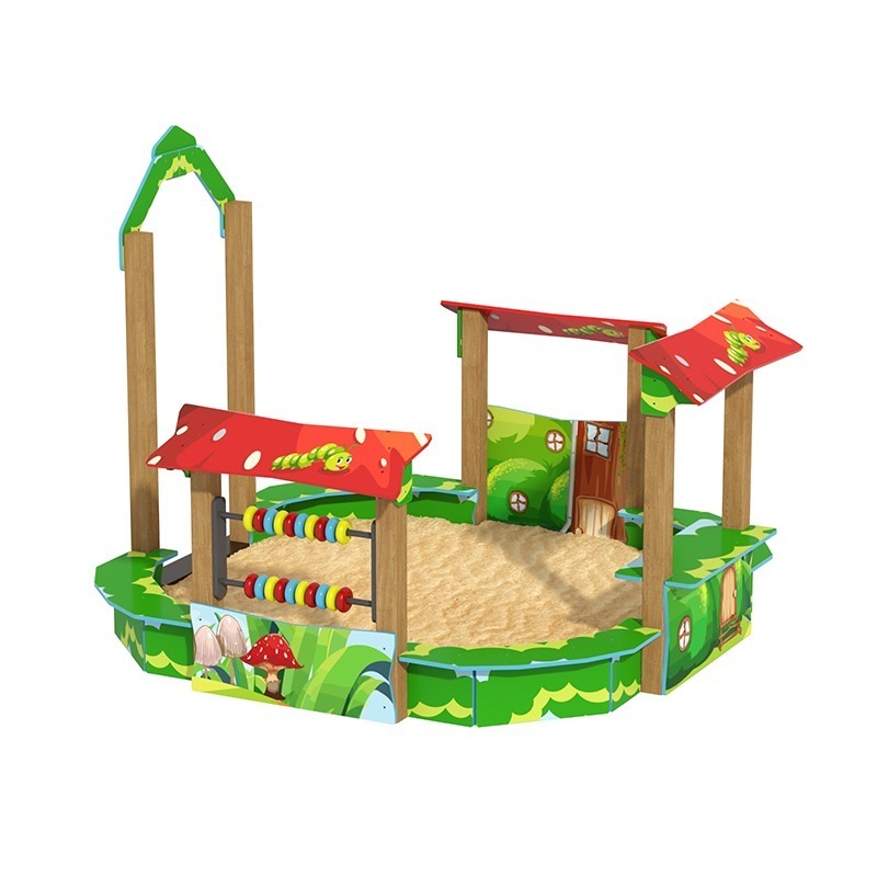 - Многофункциональные игровые площадки с песочницами, включающие дополнительные элементы как лавочки, горки, игровые домики.